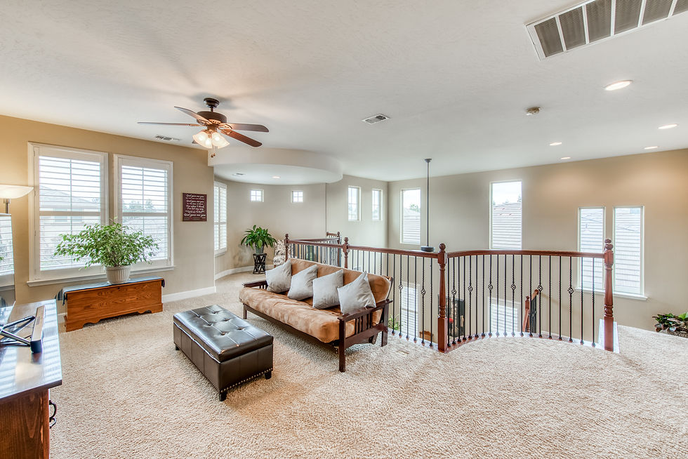 The sizable loft looks over the formal living room and provides additional living space which could easily fit a pool table. Master bedroom and two additional bedrooms are also located on the second floor.